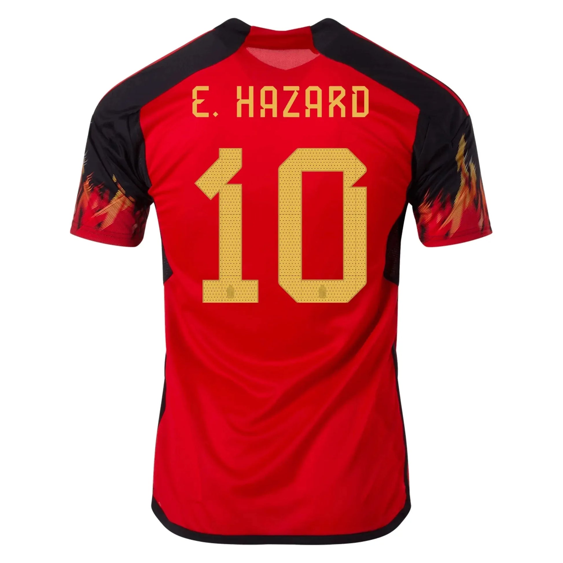 Burning bright on football's biggest stage. With red and yellow flames engulfing its black sleeves, this juniors' Belgium home jersey takes design inspiration from the team's famous Red Devils nickname. Created to keep fans dry when the on-pitch action heats up, it includes moisture-absorbing AEROREADY and mesh inserts. Sparking a fresh look on the chest, adidas' 3 Bar Logo joins a woven version of Belgium's badge.