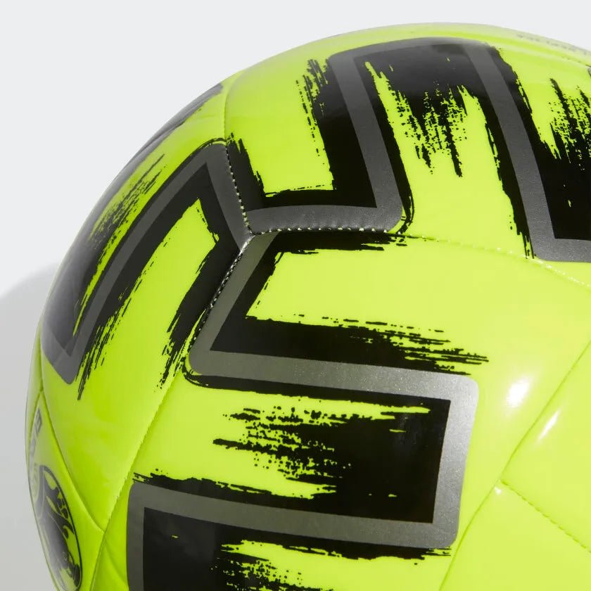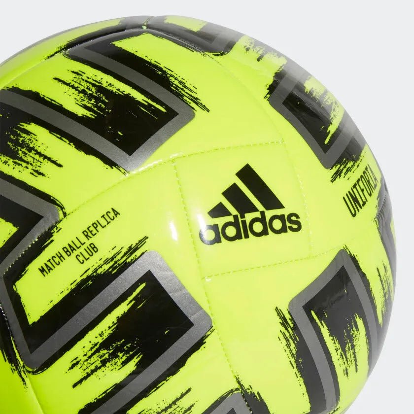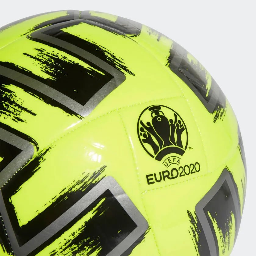Twelve hosts, 24 national teams. A continent united by sport. Created for scrimmages, this adidas Uniforia soccer ball has a bold design that borrows from the graphics on the official match ball of Europe's top international tournament. Its machine-stitched construction and butyl bladder mean it's ready to roll whenever you are.