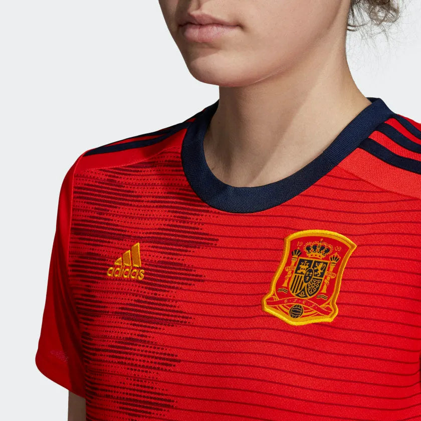 Part of Spain's official uniform, this soccer jersey is what the women's national team will pull on as they create their next chapter in France. The design propels Spain's dominant style into the future with subtle tweaks to a legendary look. It's made from soft fabric that wicks away sweat from your skin. A woven badge sits over the heart.