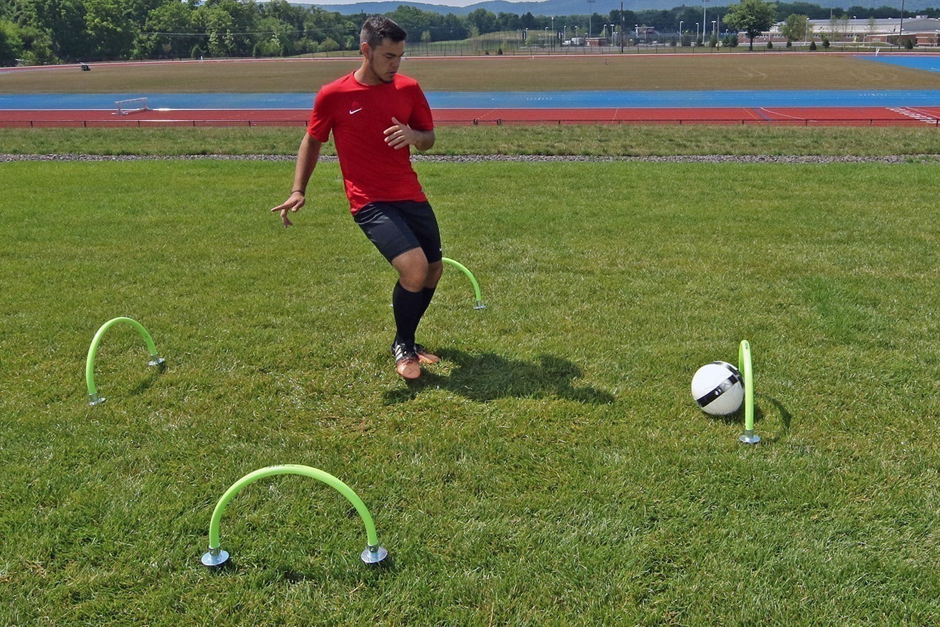 The Training Arches can be used as small target goals during small-sided soccer drills, as a target during passing drills, and even as a hurdle during conditioning training.