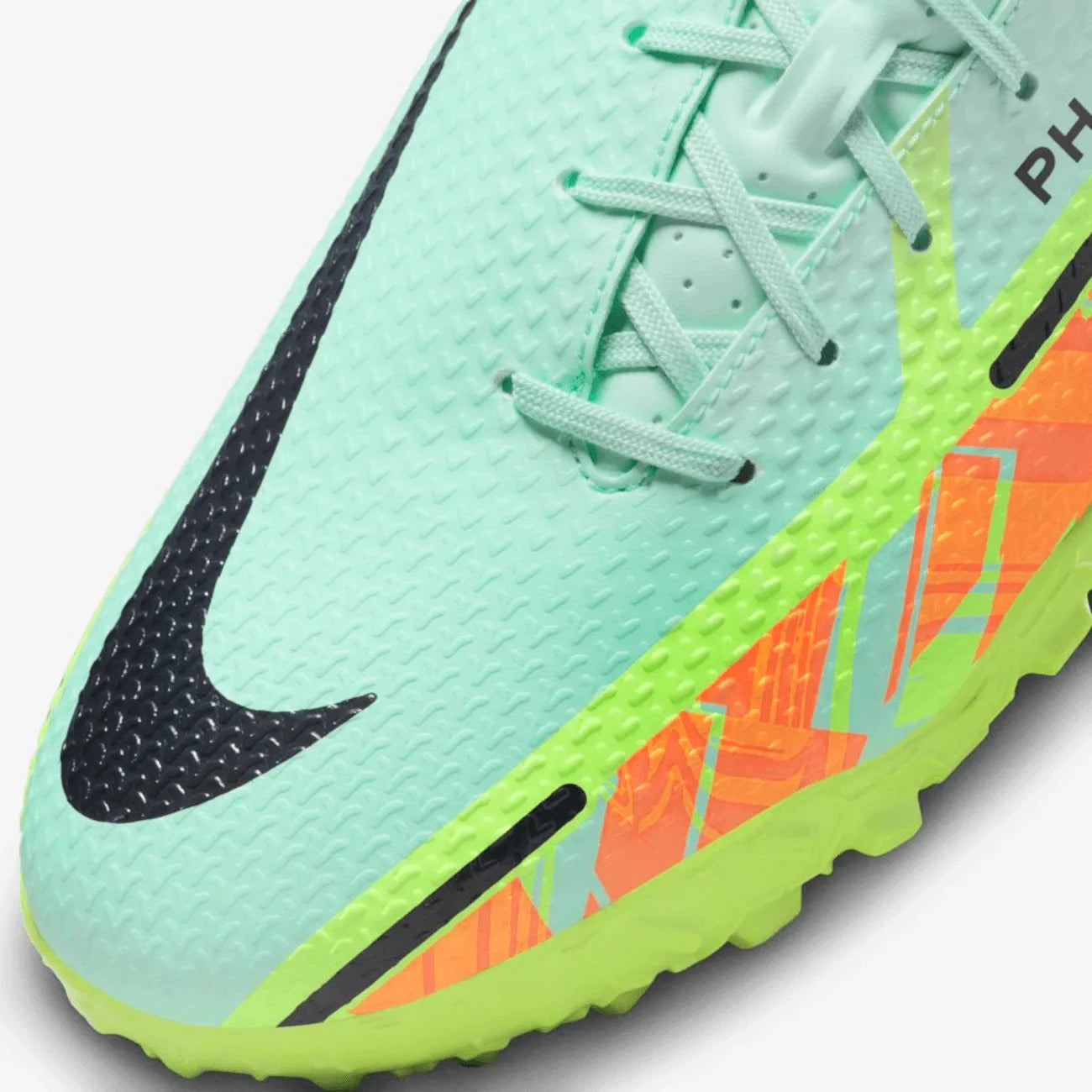 Building on the Phantom GT, the Nike Phantom GT2 TF has an updated design and patterning that are engineered to help you place your shots with pinpoint accuracy. Off-center lacing provides a clean strike zone to help you dribble, pass and score with precision.