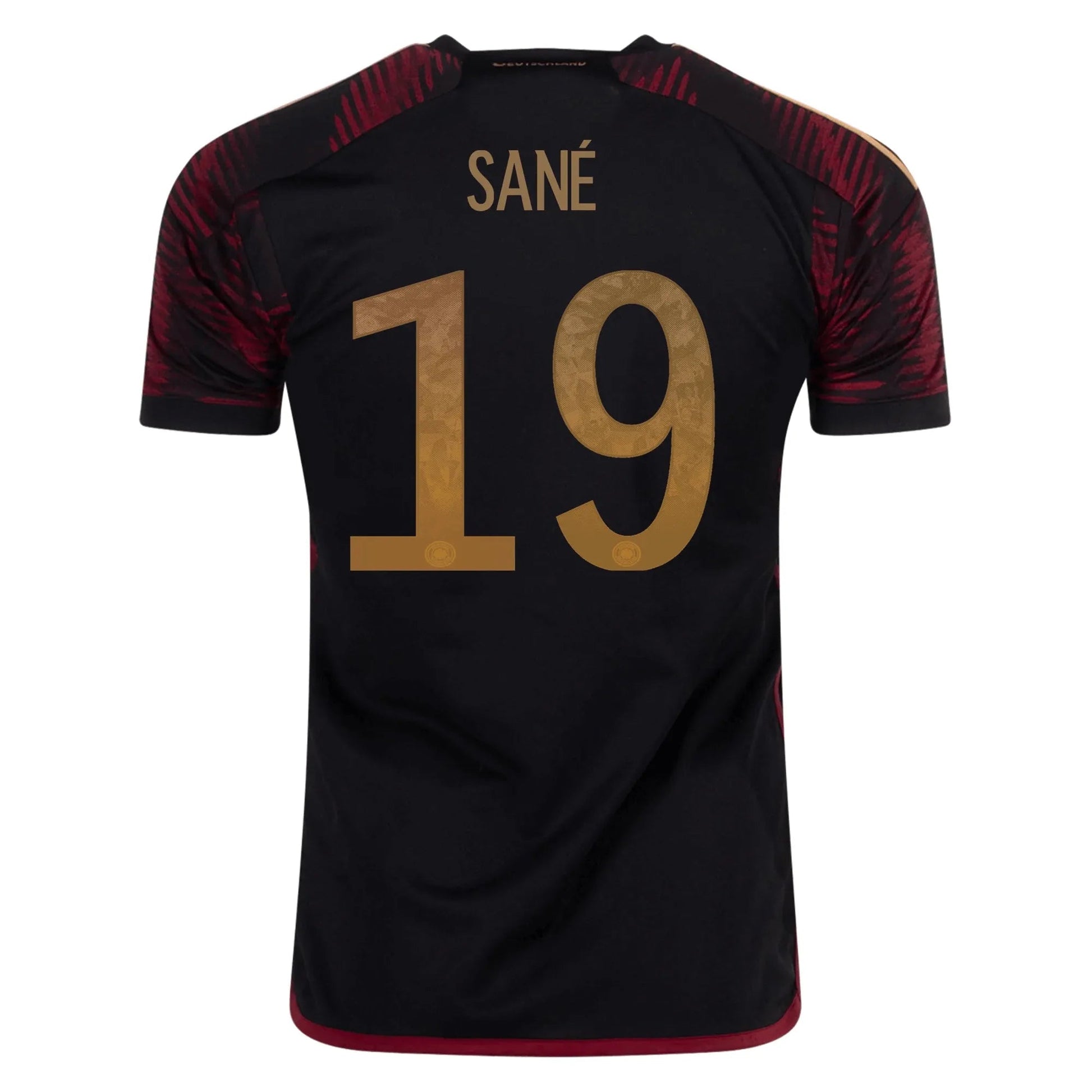 Shooting for the stars. It doesn't matter how successful they've been in the past, Germany are always in a hurry for more silverware. Borrowing the colours of the country's flag, this adidas away jersey blurs the D of "Deutschland" to reflect the dynamic football played by the current squad. Focused on keeping fans proud and comfortable, this shirt includes woven team details and moisture-wicking AEROREADY.